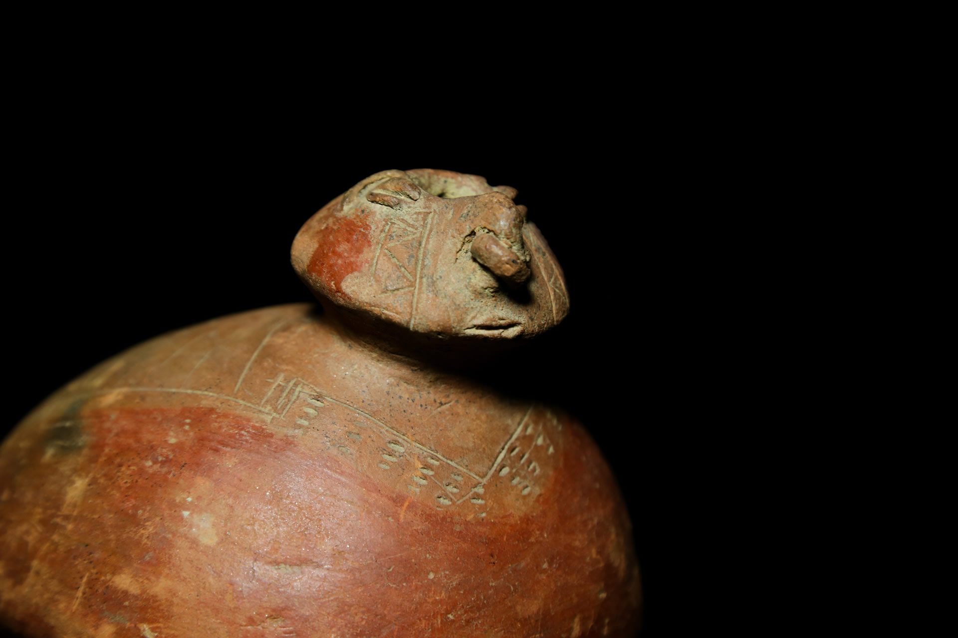 Muchos de los objetos de la colección del MUSA presentan acabados de algún tipo. Algunos han sido adornados con líneas y patrones geométricos que fueron diseñados sobre el objeto o que fueron pintados con engobes. En otros, la pintura se utiliza para representar personajes y animales. ¿Cuál