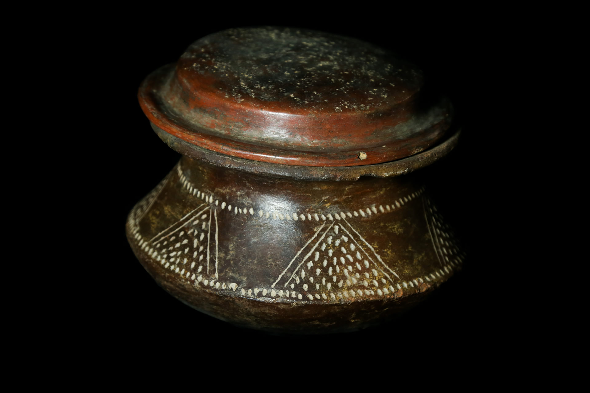 En cerámica roja se encuentran principalmente vasijas globulares, subglobulares y grandes urnas funerarias.