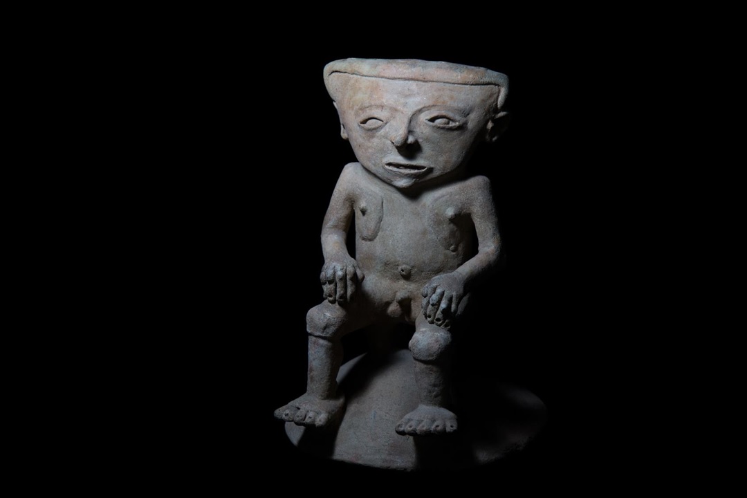 Este tipo de piezas que ves aquí fueron encontradas en el Altiplano nariñense en el Macizo colombiano. Son vasijas antropomorfas globulares que representan a un individuo con expresión de grito por su boca abierta. Esta forma le ha merecido a las piezas el nombre de "Gritones". ¿Te imaginas que pud